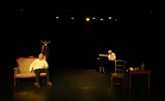 Accompagné au piano par sa muse, il nous affirme qu’en amour, la vieillesse est, peut-être, la plus exquise période de la vie